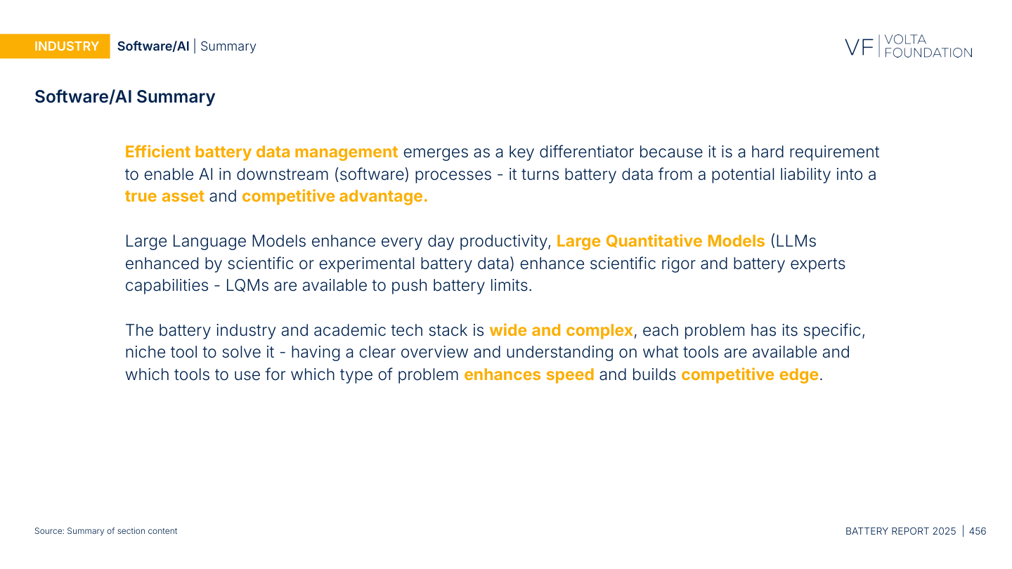 "Efficient battery data management emerges as a key differentiator because it is a hard requirement to enable AI in downstream processes. It turns battery data from a potential liability into a true asset and competitive advantage."